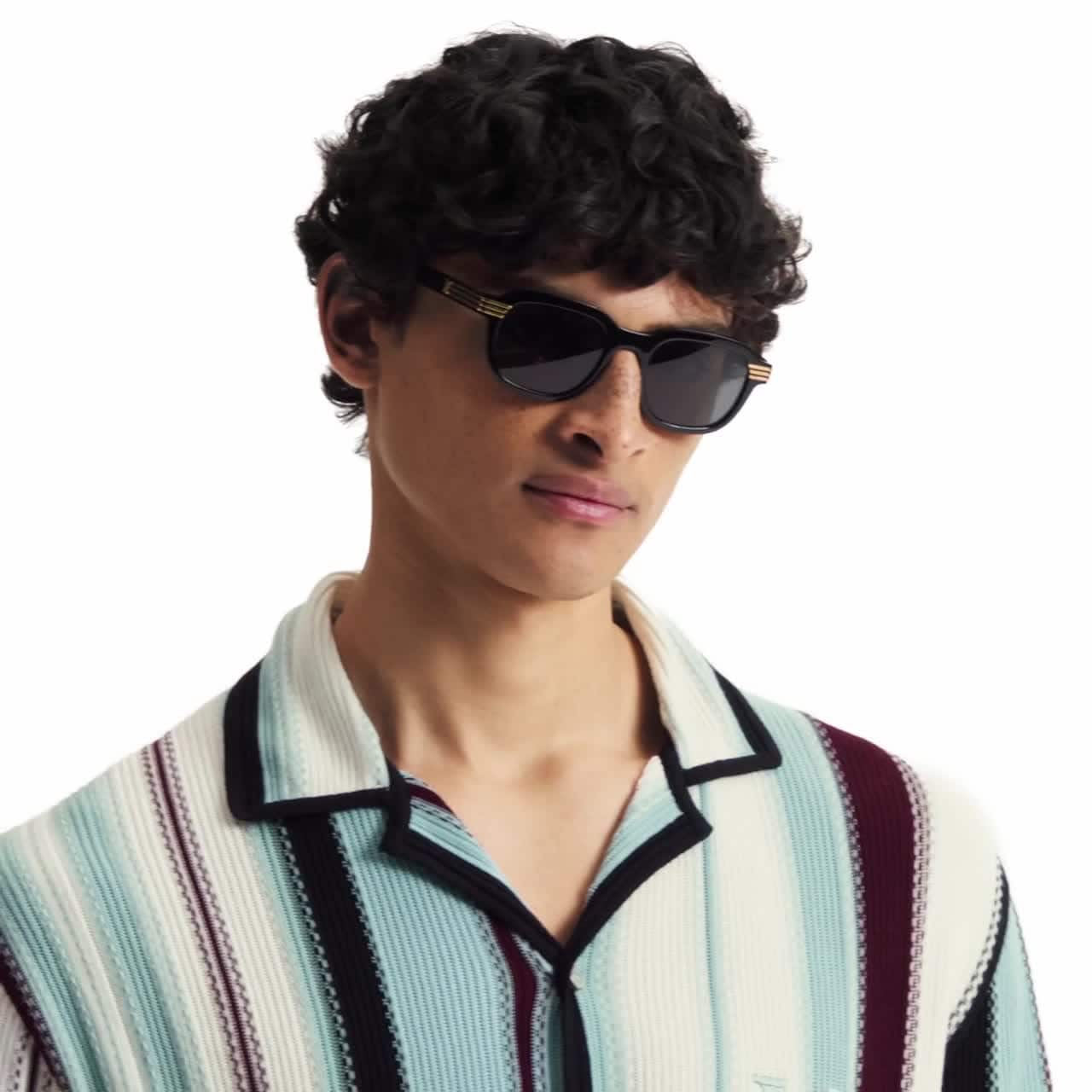 LV Slide Square Round sunglasses ini menampilkan teknik pembuatan terbaik Rumah Mode lewat desain yang tegas dan melengkung disertai detail elegan. Aksesori berbahan asetat mengilap ini dihiasi aksen empat garis dari logam keemasan yang terlihat dari bagian ujung brow-line hingga gagang, kemudian menyatu menjadi LV signature. Kacamata ini menghadirkan kesan misterius yang memukau.
