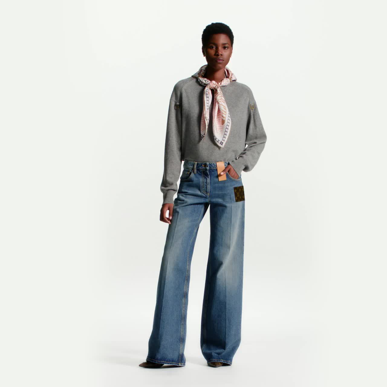 Detail khas Louis Vuitton bernuansa modern membuat celana jeans ini tampak memikat. Dibuat dari bahan stonewashed denim, celana ini memiliki desain kasual dengan potongan high waist dan boot-cut di bagian kaki. Tampilannya yang menawan dilengkapi loop berukuran besar dari bahan kulit di bagian pinggang serta patch Monogram canvas di pinggul.