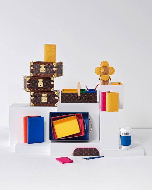 La collezione Articoli di cancelleria, impreziosita dai motivi caratteristici di Louis Vuitton e da accenti colorati, reinterpreta gli oggetti di uso quotidiano con una vivace raffinatezza, dagli astucci per le matite, ai blocchi per appunti, alle agende.