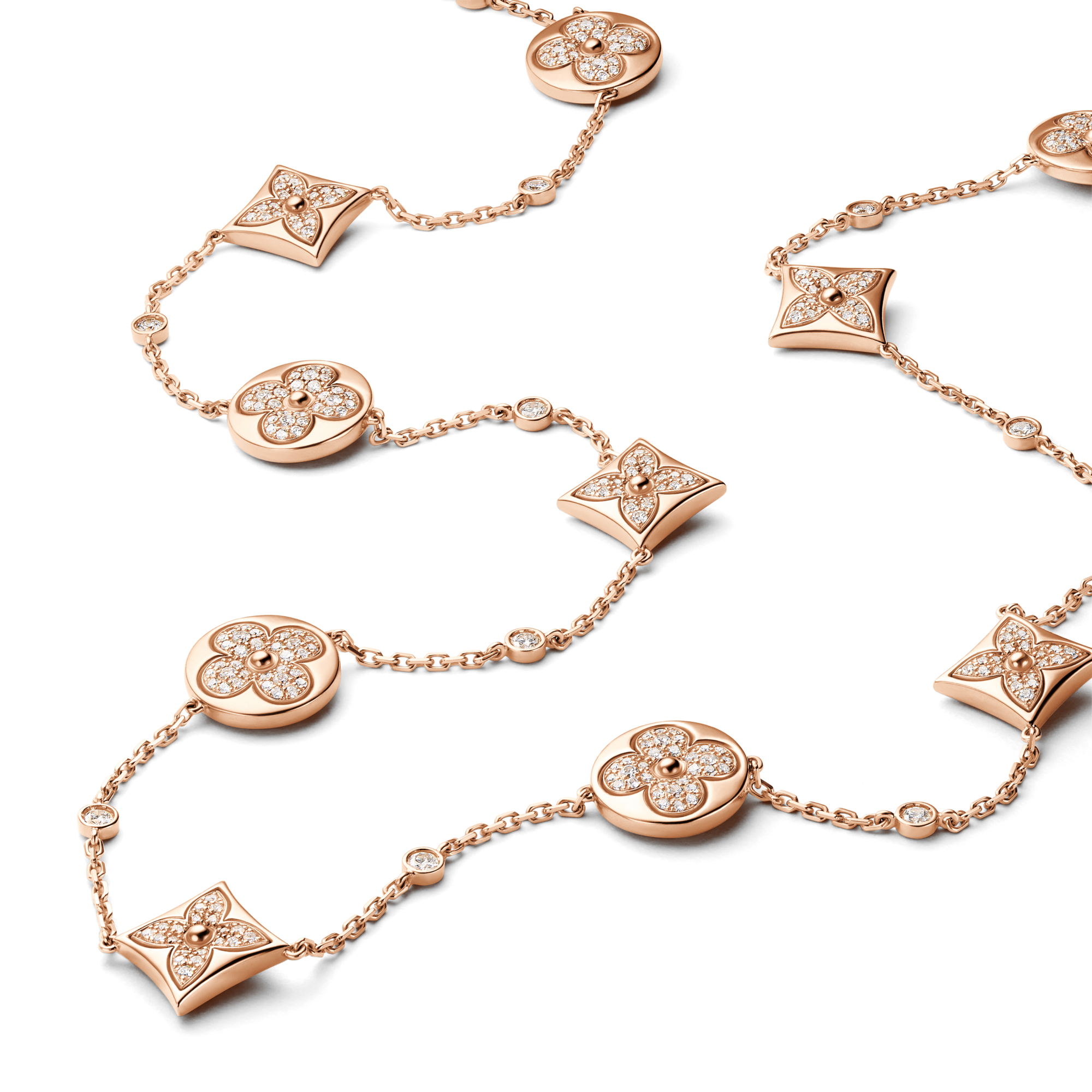 Le collezioni di gioielleria Louis Vuitton fondono design moderno e lavorazione artigianale, trasformando metalli pregiati, gemme preziose e diamanti luminosi in orecchini, anelli, bracciali e collane che caratterizzano le linee emblematiche come Blossom e LV Volt. Le preziose creazioni includono i bracciali in argento Silver Lockit realizzati dalla Maison per UNICEF.
