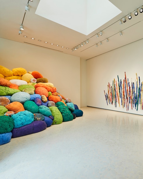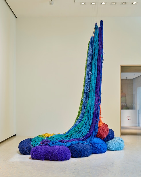 Superando le barriere tra belle arti e arti applicate, l'artista Sheila Hicks fonde modernismo, astrazione, tradizioni extra-occidentali e savoir-faire nelle sue opere intessute a mano, nelle sculture morbide e nelle installazioni monumentali. Utilizzando sculture e ambienti composti da lana, nylon, seta, lino o cotone, Hicks crea atmosfere invitanti in cui i visitatori possono passeggiare. Scopri tre delle opere iconiche dell'artista, "Atterrissage" (2014), "Bâtons de Parole" (2016) e "Another Break in the Wall" (2016), presentate per la prima volta in Corea.