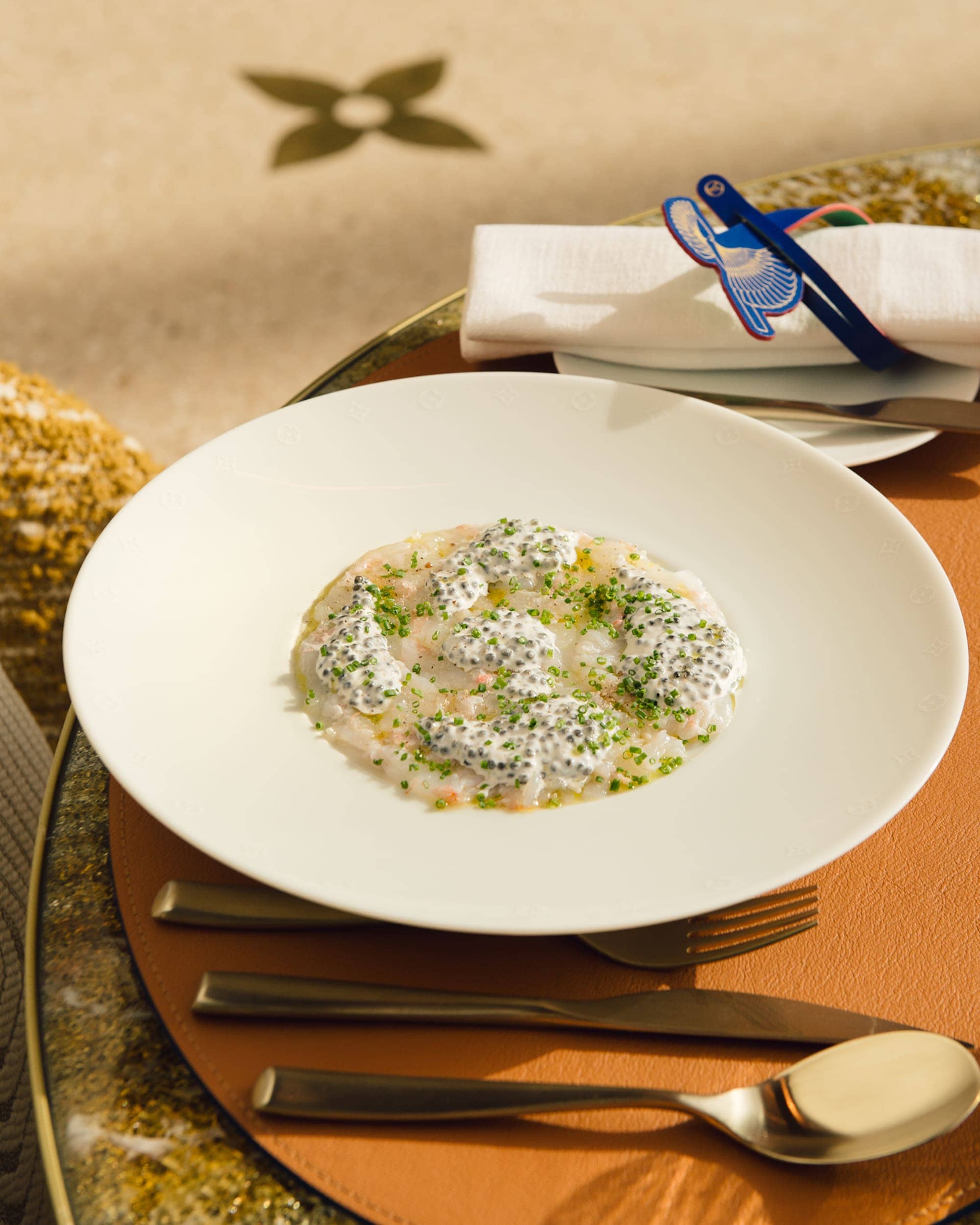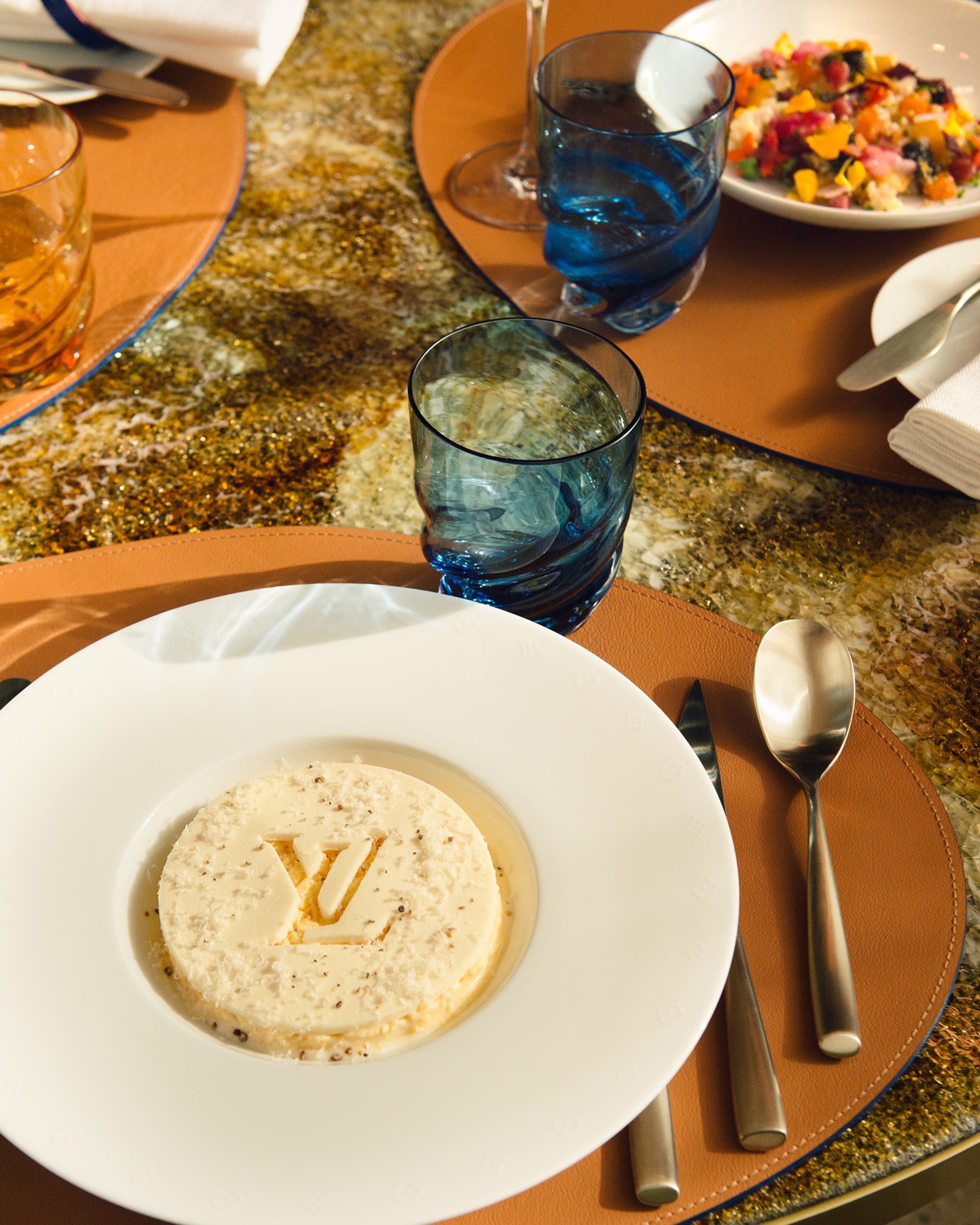 Questa esperienza culinaria Louis Vuitton è stata realizzata in collaborazione con lo chef Yannick Alléno, che supervisiona numerosi ristoranti stellati in tutto il mondo, tra cui Alléno Paris al Pavillon Ledoyen e Le 1947 al Cheval Blanc Courchevel, entrambi premiati con tre stelle Michelin.