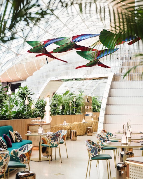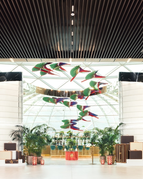 In questa lounge-meets-ristorante ad accesso privato, i viaggiatori possono rilassarsi in uno spazio progettato con lo stile tipico di Louis Vuitton e cenare con i menu "multilingue" dello chef Yannick Alléno a tutte le ore del giorno.