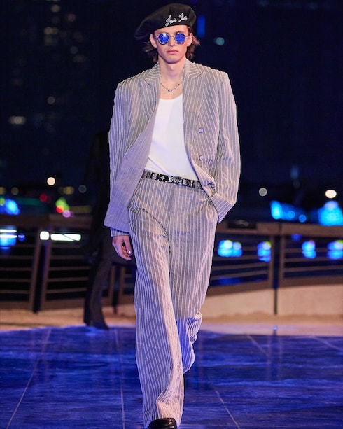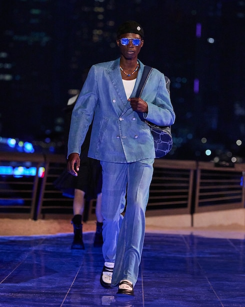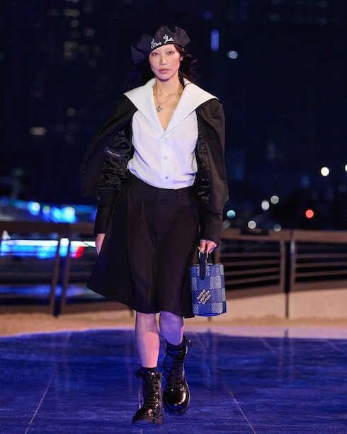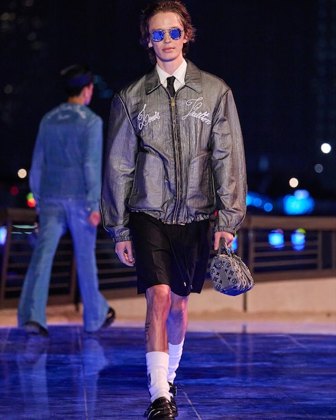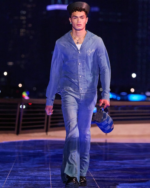 Al chiaro di luna e sotto le costellazioni del cielo notturno, la sfilata Louis Vuitton Pre-Fall 2024 Uomo si svolge lungo l'Avenue of Stars a Hong Kong. La scenografia trascende lo spirito del viaggio tipico della Maison, proiettando le spiagge delle Hawaii a Hong Kong.