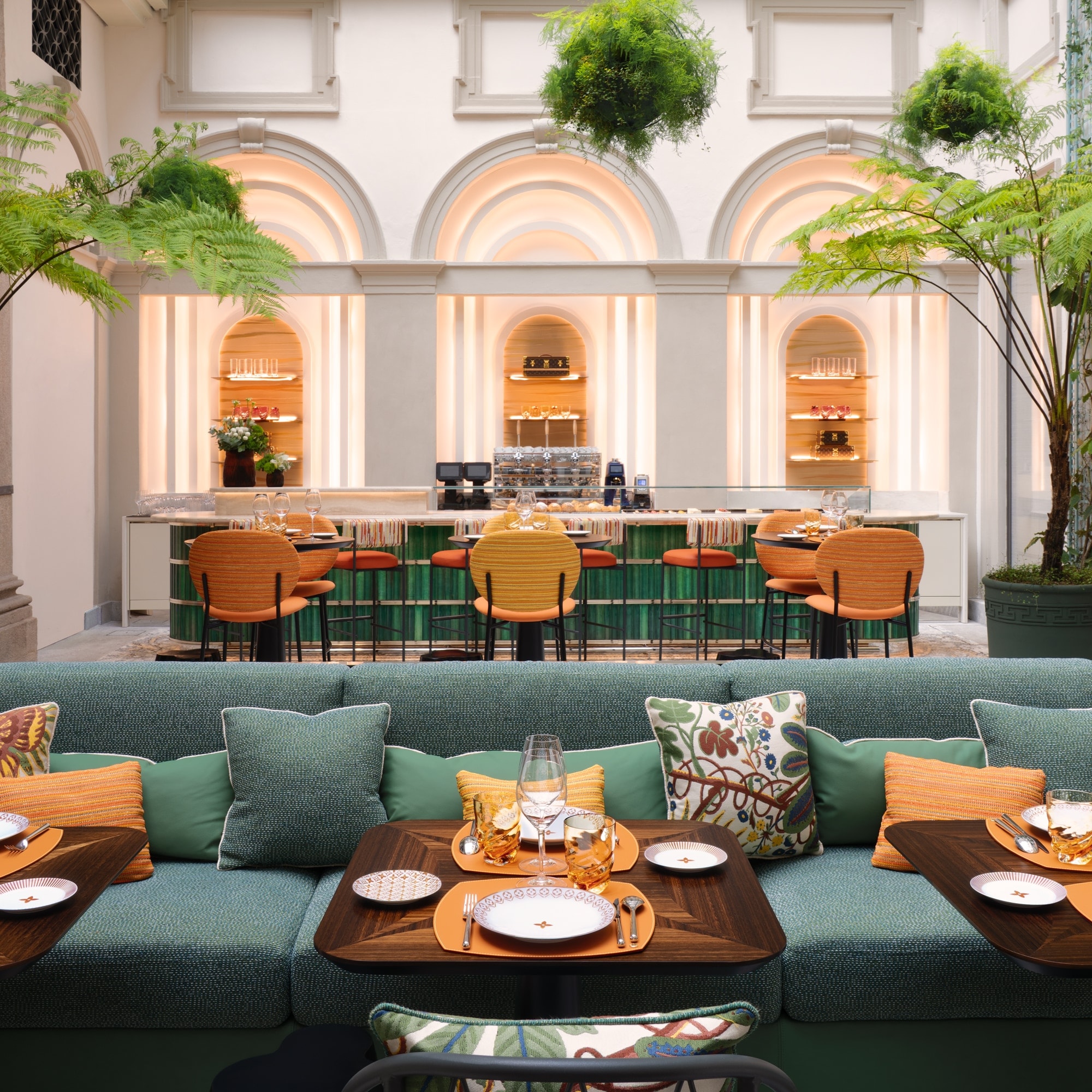 Louis Vuitton riapre le porte della sua storica sede milanese, inaugurando una rivoluzione architettonica all'interno del Palazzo Taverna. Con il debutto del Da Vittorio Café Louis Vuitton e del ristorante DaV by Da Vittorio Louis Vuitton, lo spazio intreccia perfettamente tradizione, design contemporaneo e gastronomia italiana.