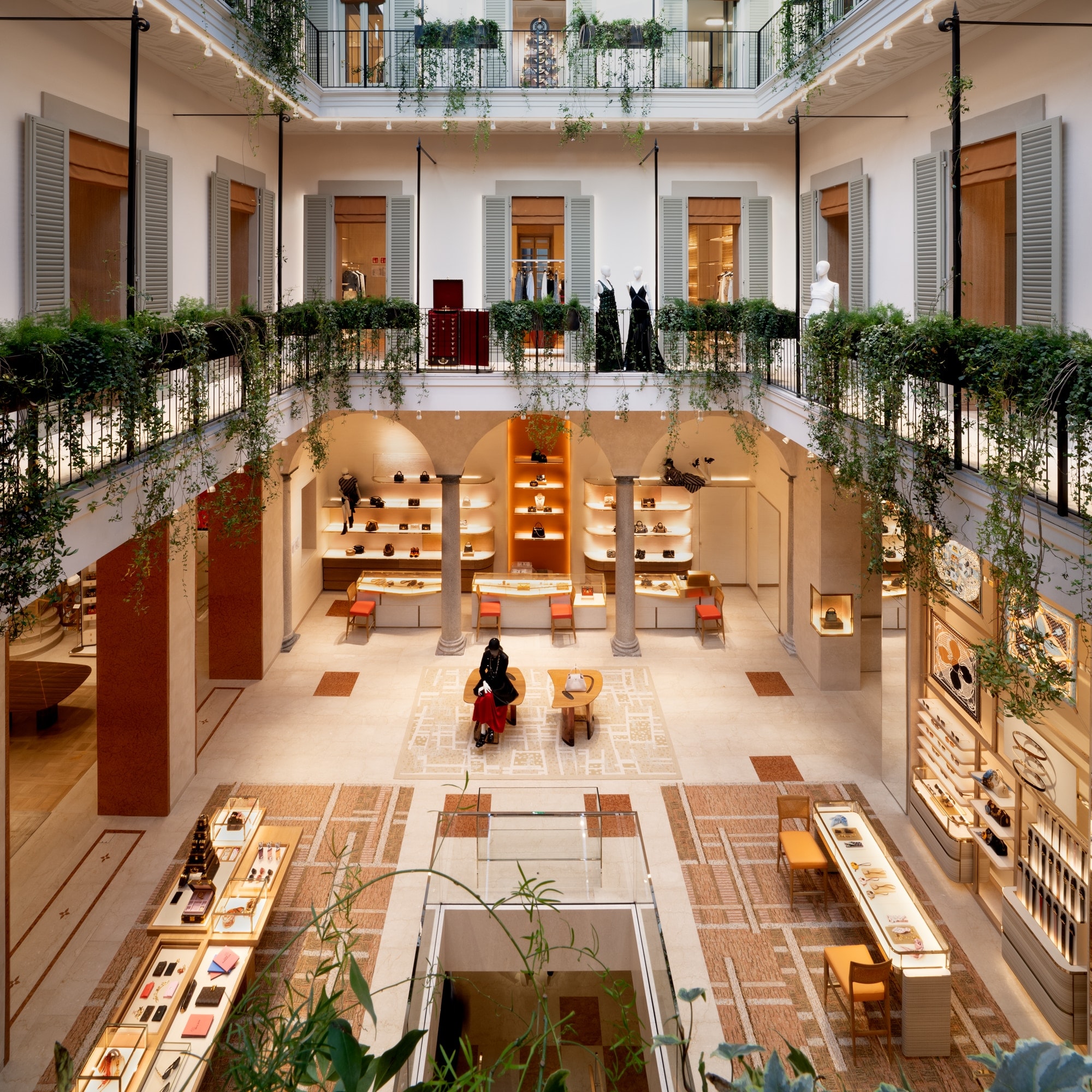 In Via Monte Napoleone, Louis Vuitton rende omaggio alla città di Milano. Nel progetto architettonico firmato da Peter Marino, la Maison ha saputo fondere l’eleganza del savoir-faire francese con la qualità dell’artigianato italiano, arte ricercata, materiali raffinati e spazi dedicati al prêt-à-porter, alle calzature, all'abbigliamento maschile e alla nuova LV Home Collection.