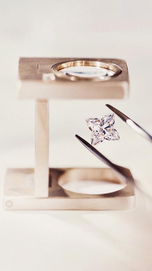 Con l'obiettivo di proporre solo i diamanti più pregiati, gli esperti di qualità di Louis Vuitton in Francia verificano non solo il taglio e la lucidatura, ma anche le caratteristiche della pietra, come il colore e la purezza.