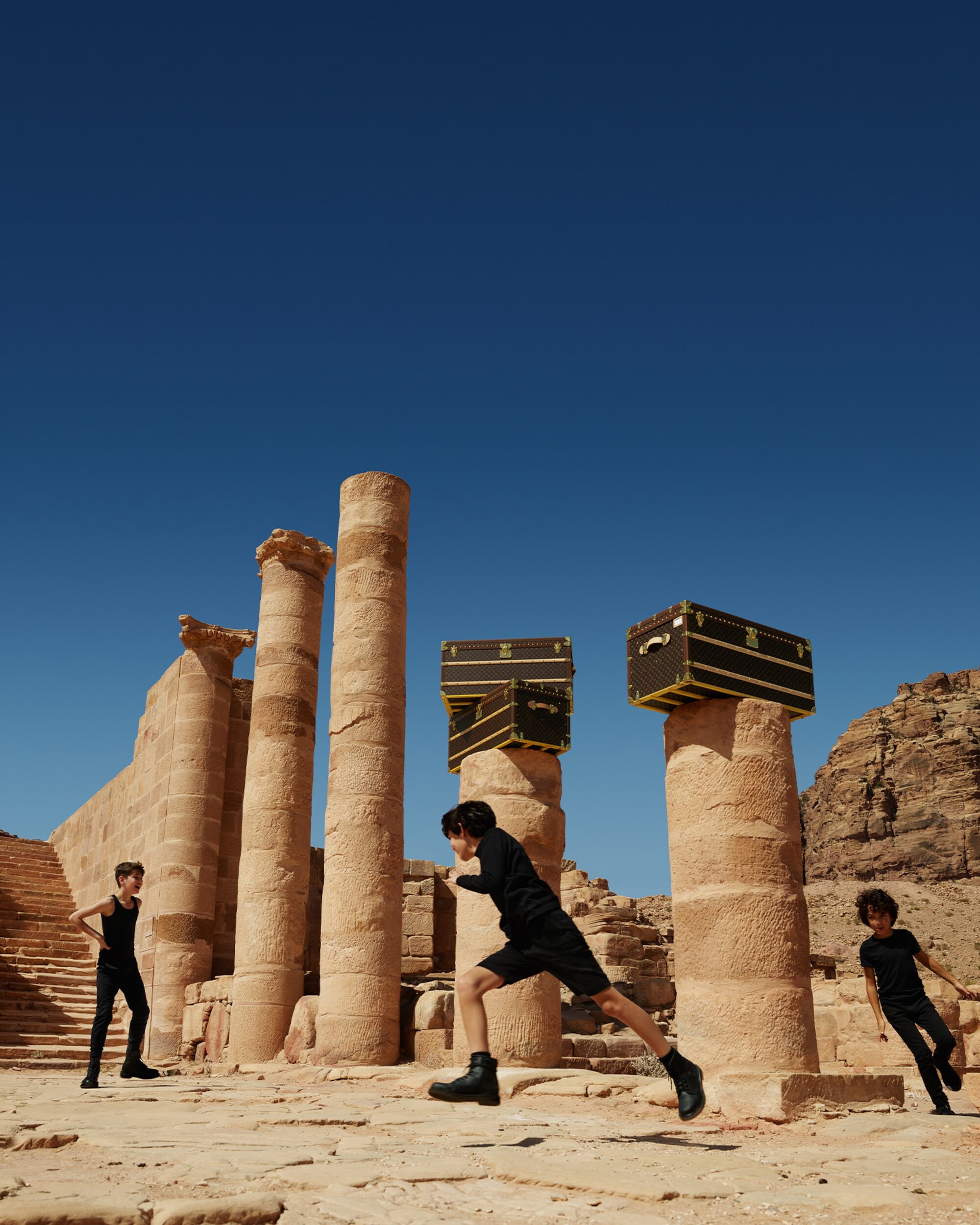 Louis Vuitton intraprende un viaggio onirico esplorando ambientazioni da sogno in tutto il mondo, dove i paesaggi rappresentano un'ode all'infanzia. Viaggiando nella natura selvaggia di Austin, in Texas, la fotografa Viviane Sassen immortala un bambino e il suo gruppo di amici mentre partono all'avventura, con l'iconico baule Louis Vuitton come veicolo immaginario. Nel vasto deserto del Texas, le prospettive prendono forma, le ombre prendono vita e la natura si rivela.