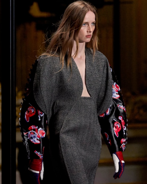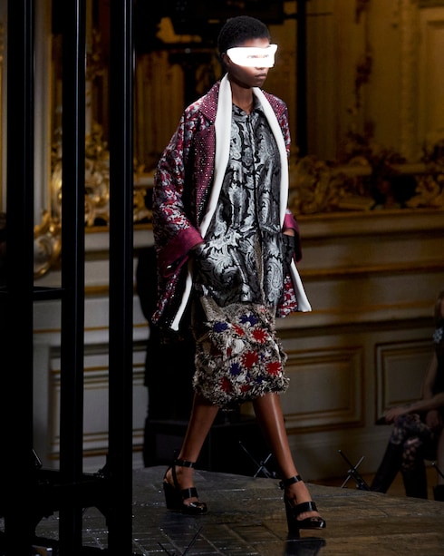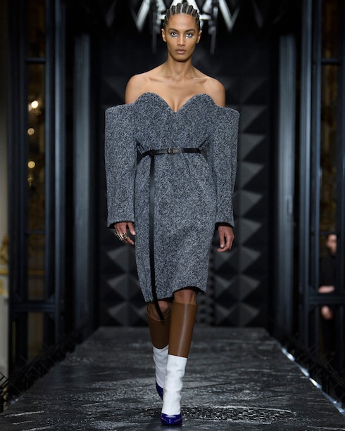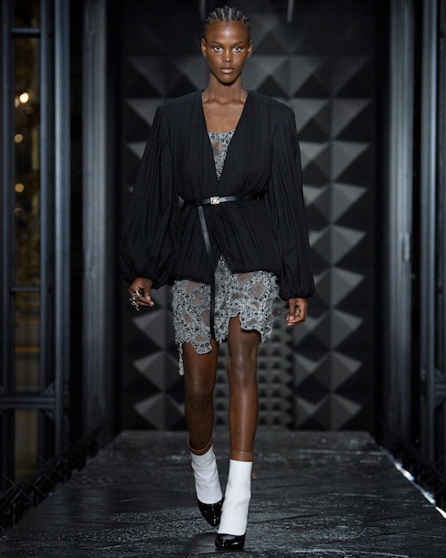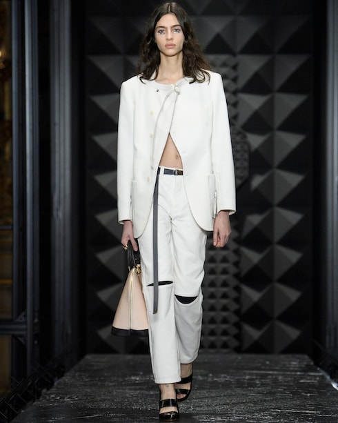 Esplorando i codici sartoriali dello stile francese, la collezione Autunno-Inverno 2023 rivela l'enigmatica essenza dello stile parigino. Mettendo in atto l'arte dell'illusione, gli stivali appaiono come décolleté e i ricami intricati come maglie, confondendo il confine tra percezione e realtà, mentre borse e accessori emblematici assumono velatamente il tricolore della bandiera. Ricca di movimento e morbidezza, Nicolas Ghesquière introduce una nuova forma, simbolo di una nuova identità francese.
