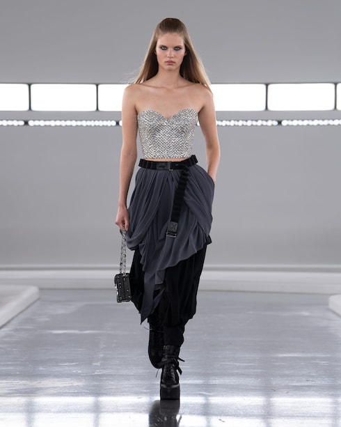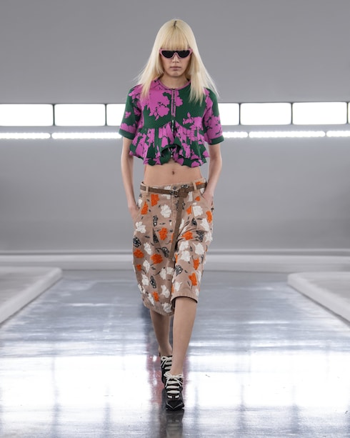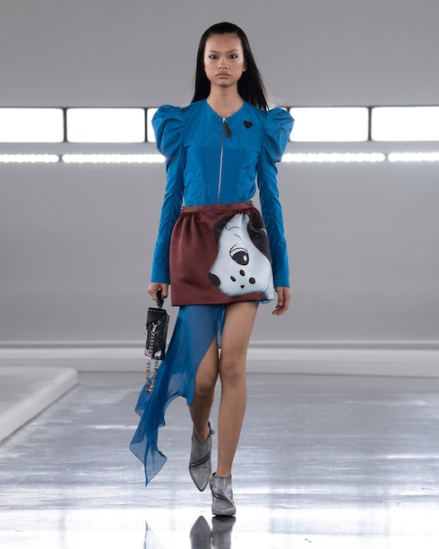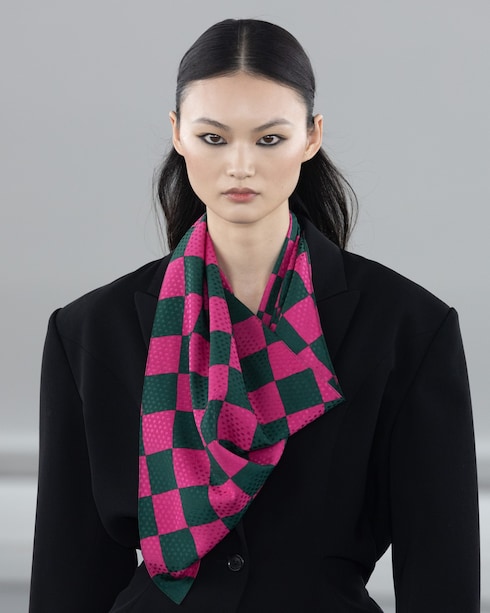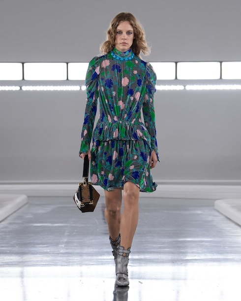 Favorendo la libera espressione tra colore e forma, Nicolas Ghesquière presenta una collezione femminile ricca di contrasti, dove silhouette corte e allungate si affiancano, mentre una serie di motivi ultra-grafici si accosta a materiali raffinati, a dimostrazione della creatività senza limiti della Maison.