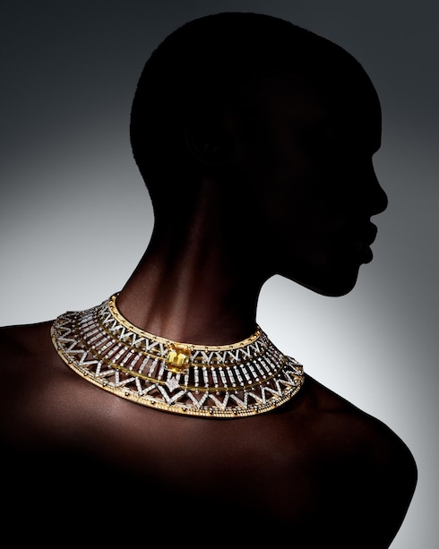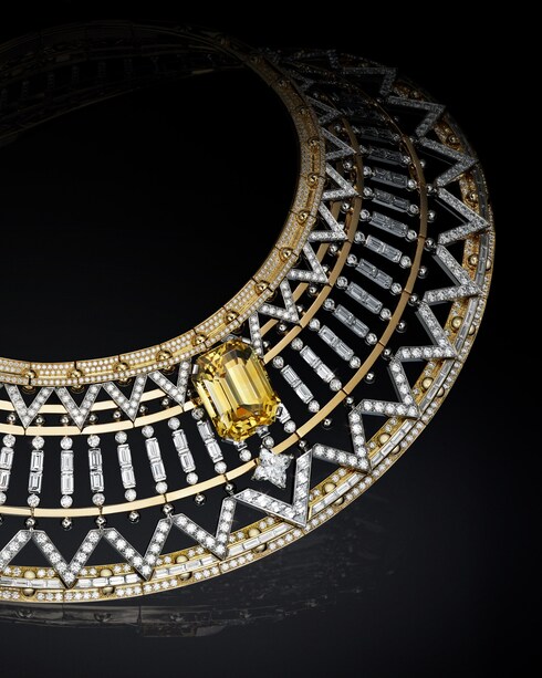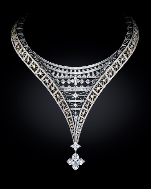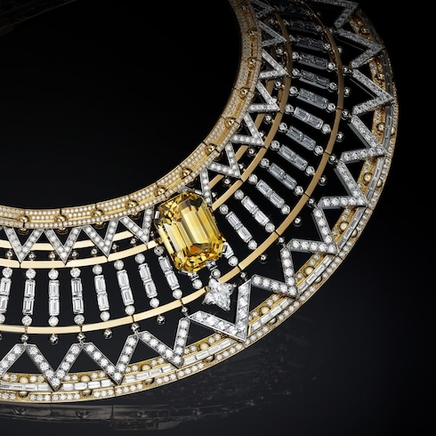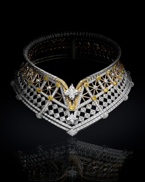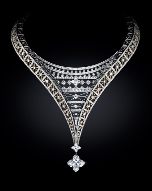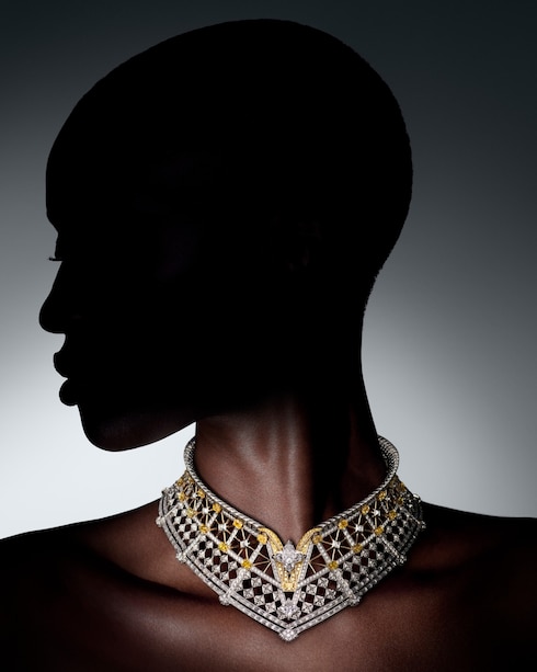 Il savoir-faire parigino si esprime in Victoire, un omaggio straordinario alla maestria e all'eredità architettonica. La collana, caratterizzata da 25 diamanti gialli, reinterpreta con audacia l'iconica forma a V di Louis Vuitton con una brillantezza a cascata, incarnando la maestria del svoir-faire del passato e l'eleganza moderna.