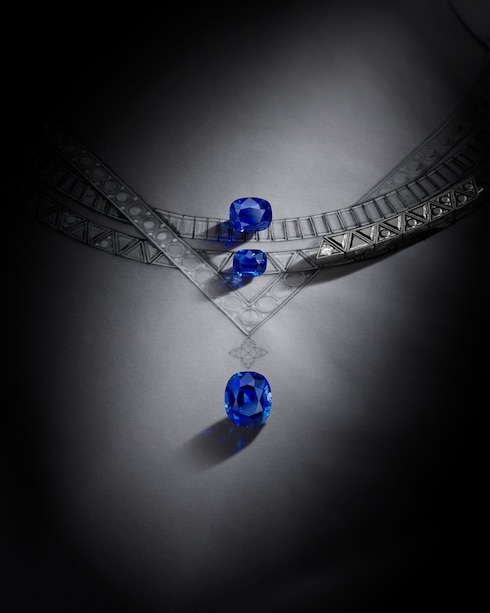 Gravité trae ispirazione dalle scoperte scientifiche, dove la mobilità ha ridefinito le leggi naturali. La sua precisione rivela un sottile gioco di pietre e metalli preziosi. La brillantezza dei rari zaffiri è esaltata da pietre incastonate e diamanti di diverse dimensioni, il tutto impreziosito dalla firma a V della Maison.