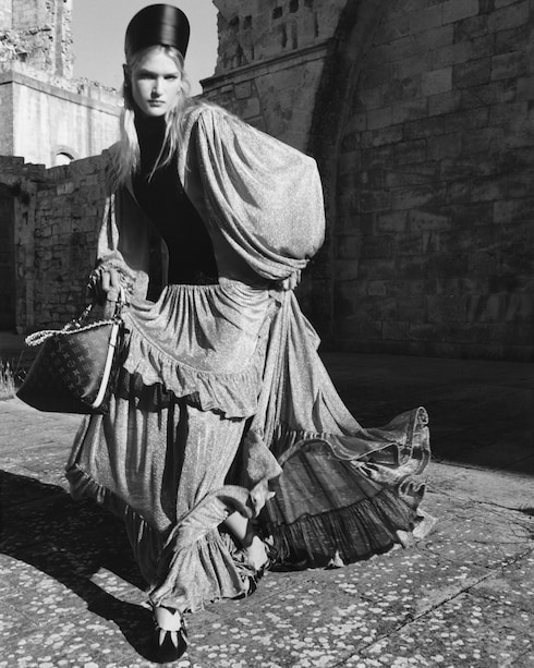 In uno scambio tra epoche, lo splendore del Medioevo si combina con lo stile audace del glam rock nella Collezione Cruise 2026 di Nicolas Ghesquière.