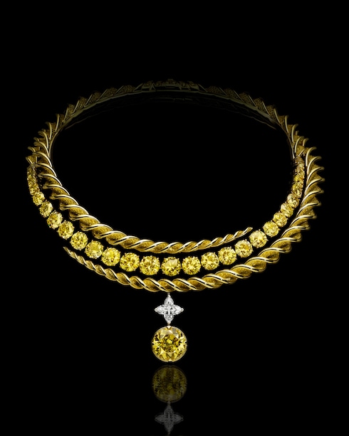 Apice radioso della brillantezza, Eternal Sun è un design puro e minimalista, emancipato da tutti i codici, dove il creatore si esprime con un genio sfrenato, epilogo della collezione. Una spirale dorata si snoda attorno a 27 squisiti diamanti gialli, centrati da un esclusivo diamante LV Monogram taglio Star da 3,88 carati e da un magnifico diamante giallo rotondo da 14 carati, che risplende di un'eleganza disinibita. Fonde maestria e libertà in una forma infinitamente versatile: un'apoteosi dorata di luce.
