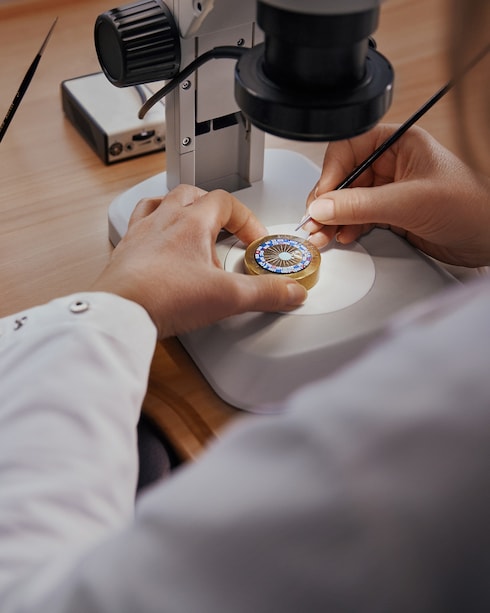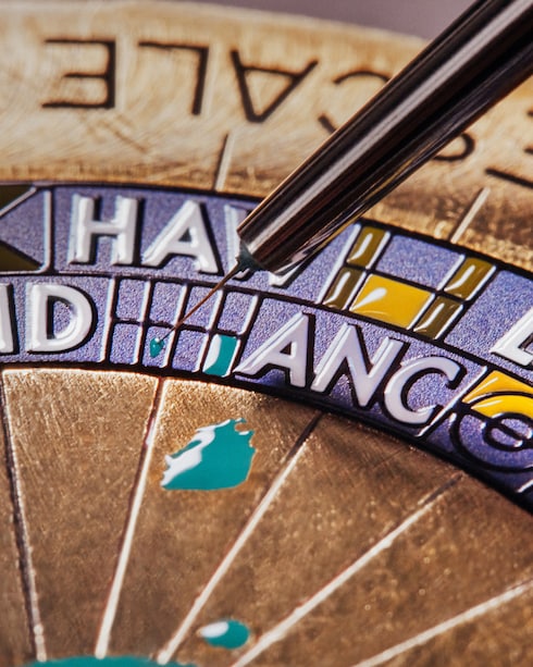 Caratterizzati da un'eccezionale maestria e precisione, i lavori di pittura in miniatura valorizzano le scene minuziose del quadrante attraverso l'assoluta padronanza del pennello, caratterizzato da un singolo crine dello spessore di meno di un decimo di millimetro. Grazie alla selezione di una palette di colori estremamente espressiva, l'artigiano esalta le sfumature di una visione altamente creativa con una pazienza e un'attenzione al dettaglio senza eguali.