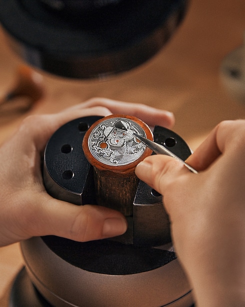 Nelle mani esperte di abili professionisti, l'incisione diventa una forma di espressione artistica, in cui il tracciato di linee sottili, proporzioni e forme con ombreggiature sfumate dà vita e profondità alla decorazione di quadranti, casse e parti del movimento. Per incidere il metallo e raggiungere il livello di dettaglio richiesto da questa tecnica tradizionale, il maestro incisore utilizza numerosi strumenti, come lo scalpello. Gli intricati motivi incisi diventano opere d'arte senza tempo, a testimonianza del raffinato connubio tra tradizione artigianale ed estetica creativa nel mondo dell'orologeria.