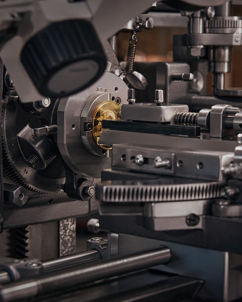 Tecnica tradizionale di incisione decorativa su metallo, il guilloché esprime la perfetta armonia tra manualità e macchinario. Con la massima abilità, il maestro guillocheur guida lo strumento per realizzare motivi lineari o geometrici di impareggiabile finezza e armonia, creando sottili giochi di luce. Questi caratteristici elementi grafici sono il segno distintivo delle raffinate creazioni orologiere della Manifattura.