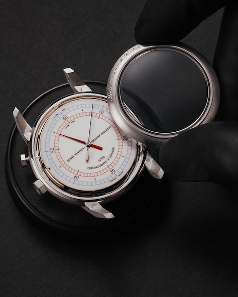 Il cronografo LVRR-01 con un meccanismo sorprendente rappresenta la visione creativa condivisa da Jean Arnault, Direttore della Divisione Orologiera di Louis Vuitton, e Rexhep Rexhepi, fondatore dell'Atelier Akrivia. Due personalità unite dalla reciproca passione per l'Alta Orologeria.
