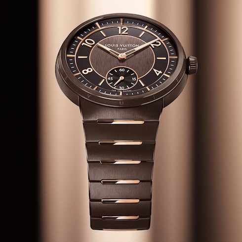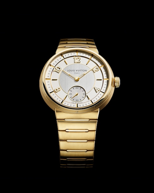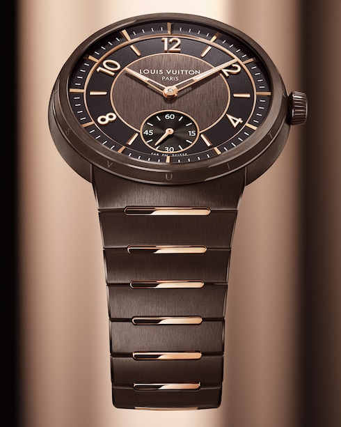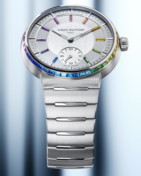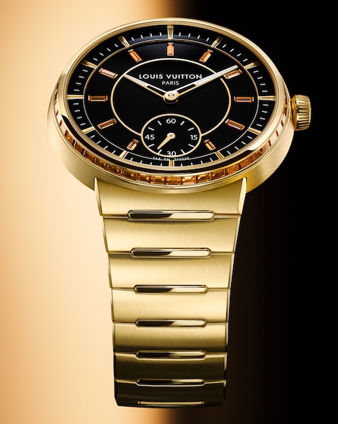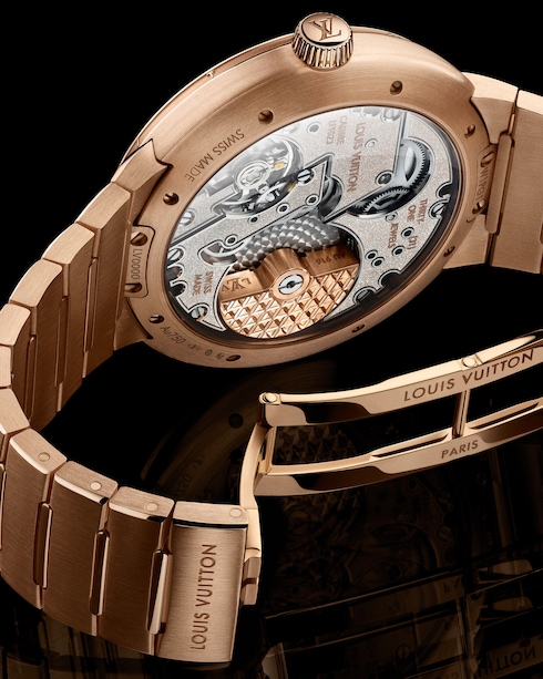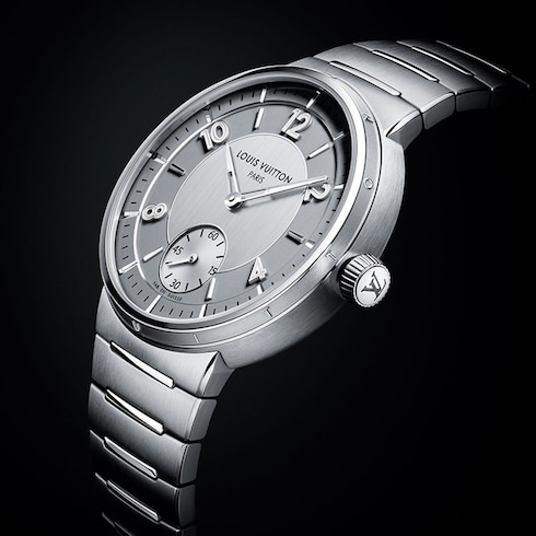 Impreziosito da finiture a contrasto, il segnatempo unisex presenta il primo bracciale integrato di Louis Vuitton, che si integra perfettamente nella cassa sottile, offrendo comfort e fluidità grazie alle sue linee curve.