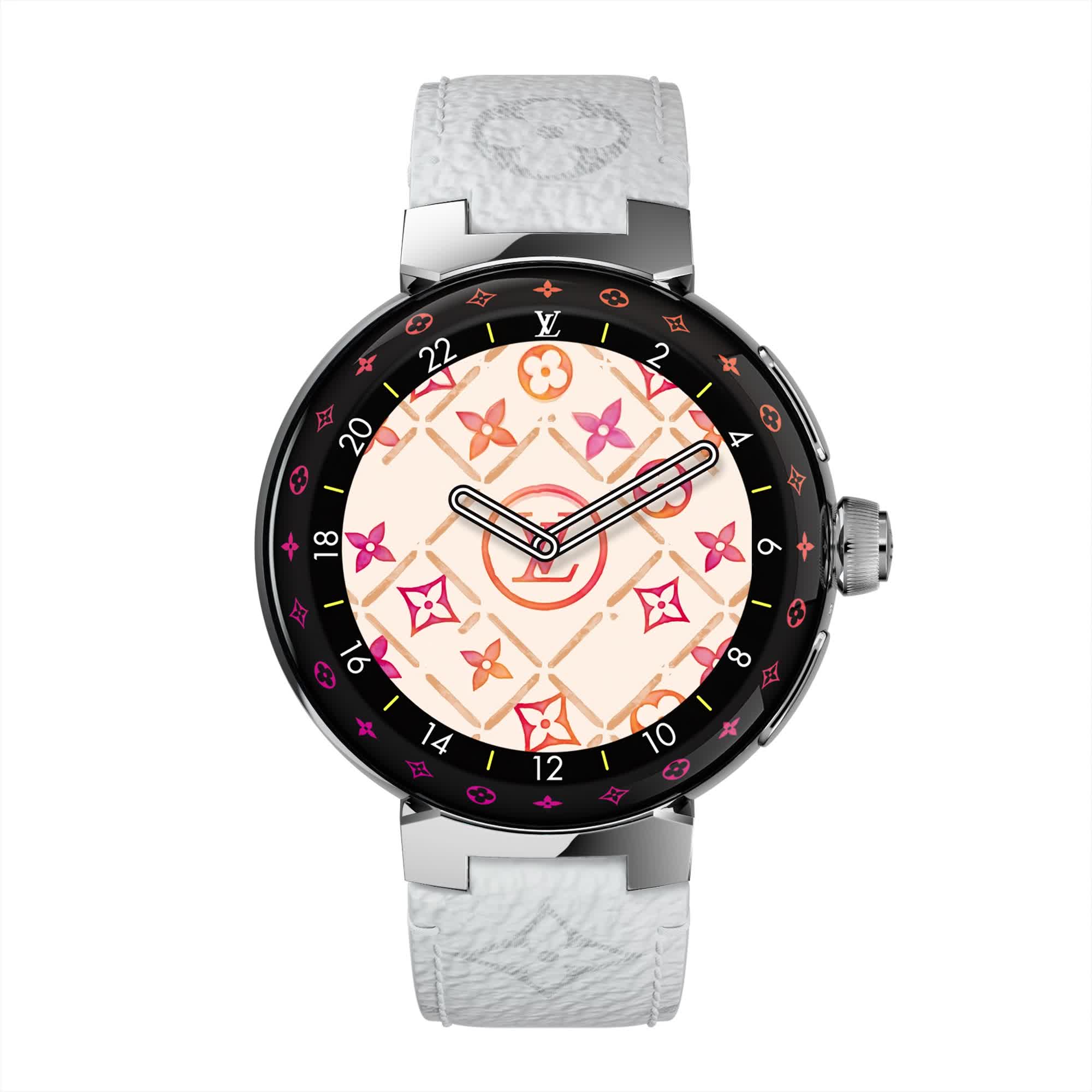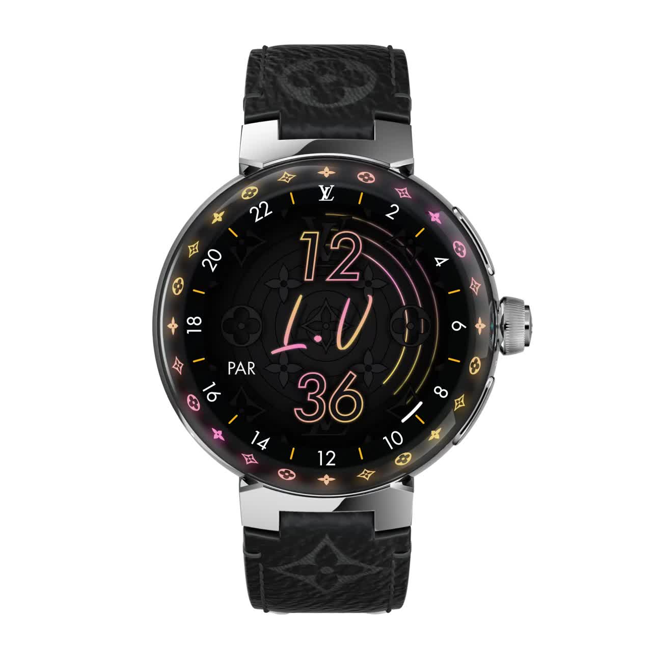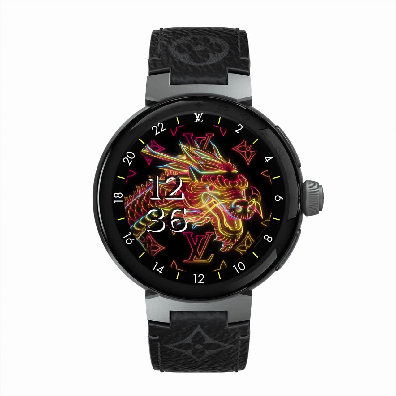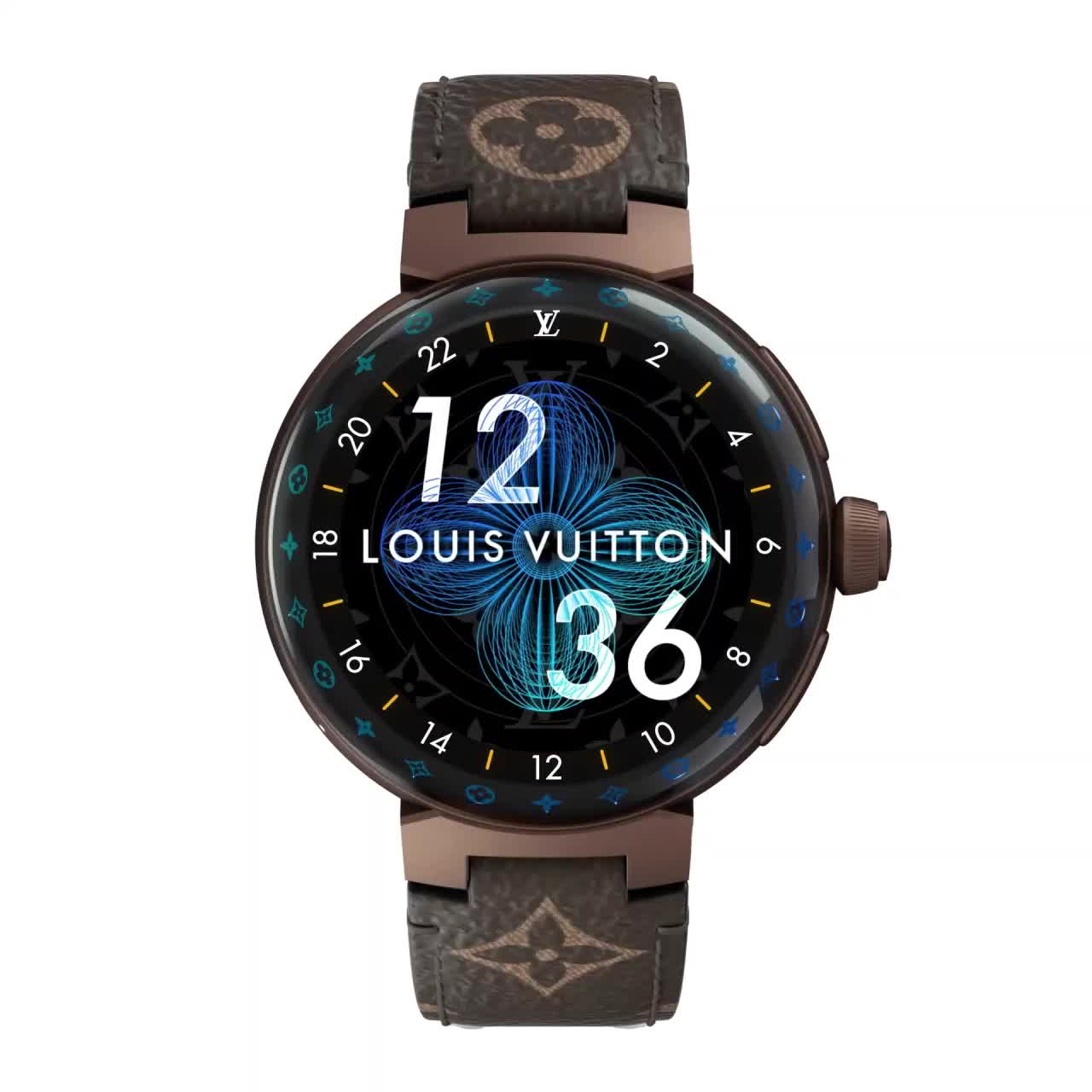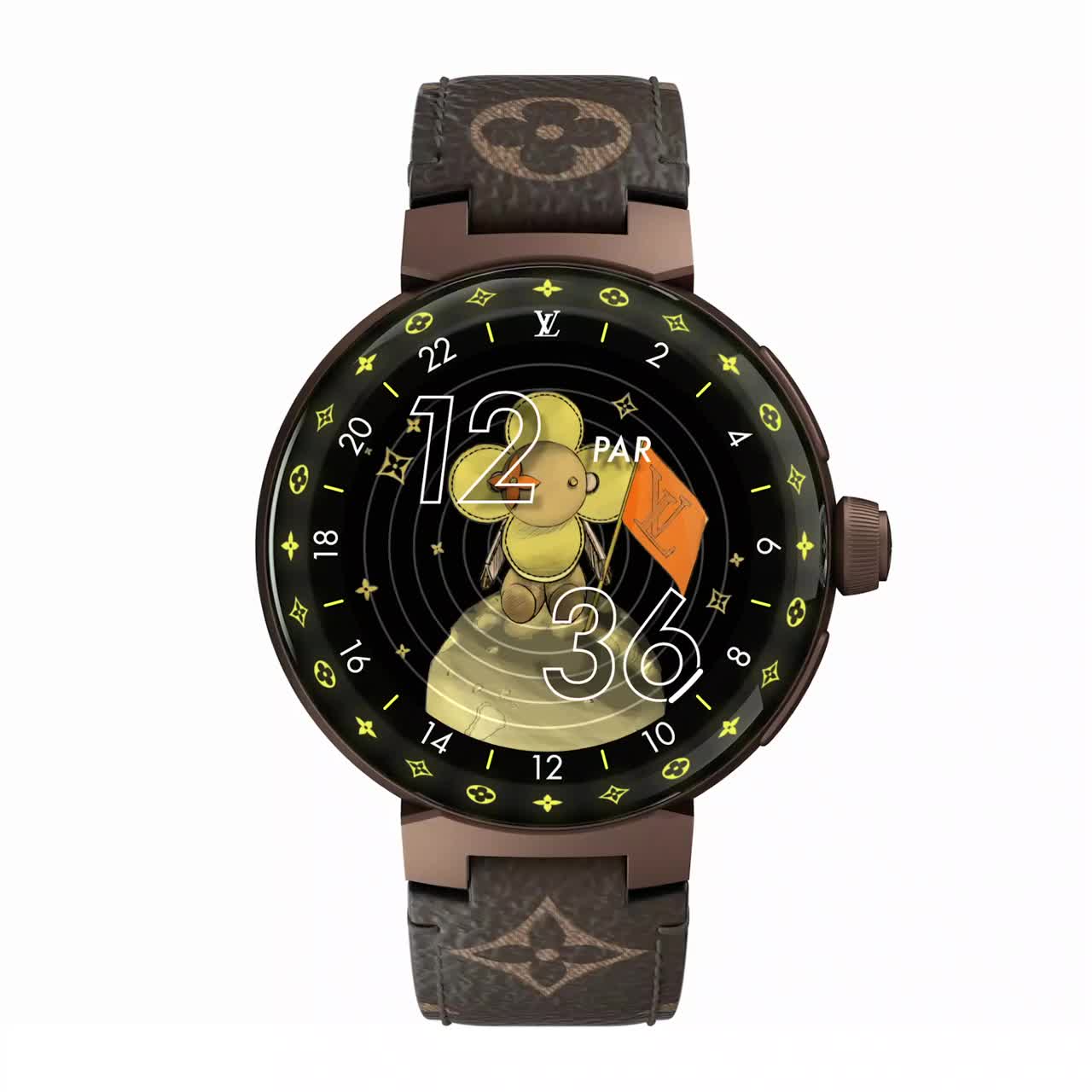 Dietro il bordo levigato, 24 luci a LED animano il caratteristico anello Louis Vuitton Monogram. Ogni volta che l'orologio si attiva o riceve una notifica, le luci si accendono in un caleidoscopio di colori danzanti, creando un affascinante bagliore animato che illumina il buio.