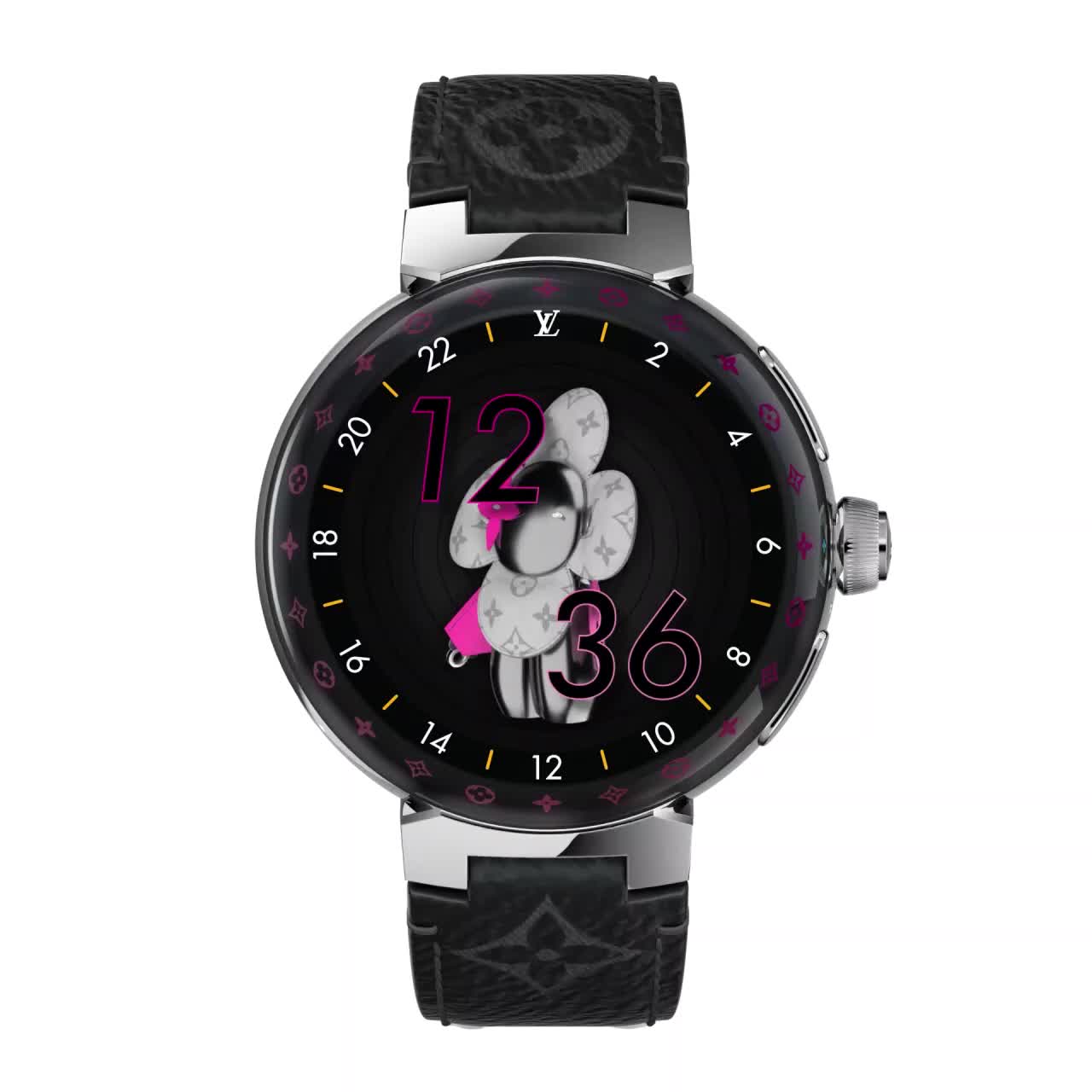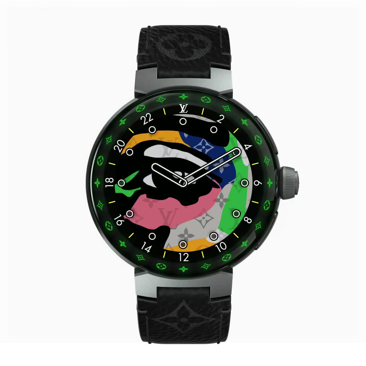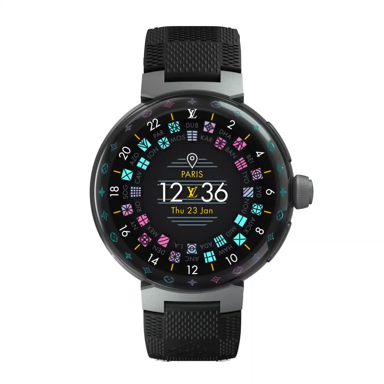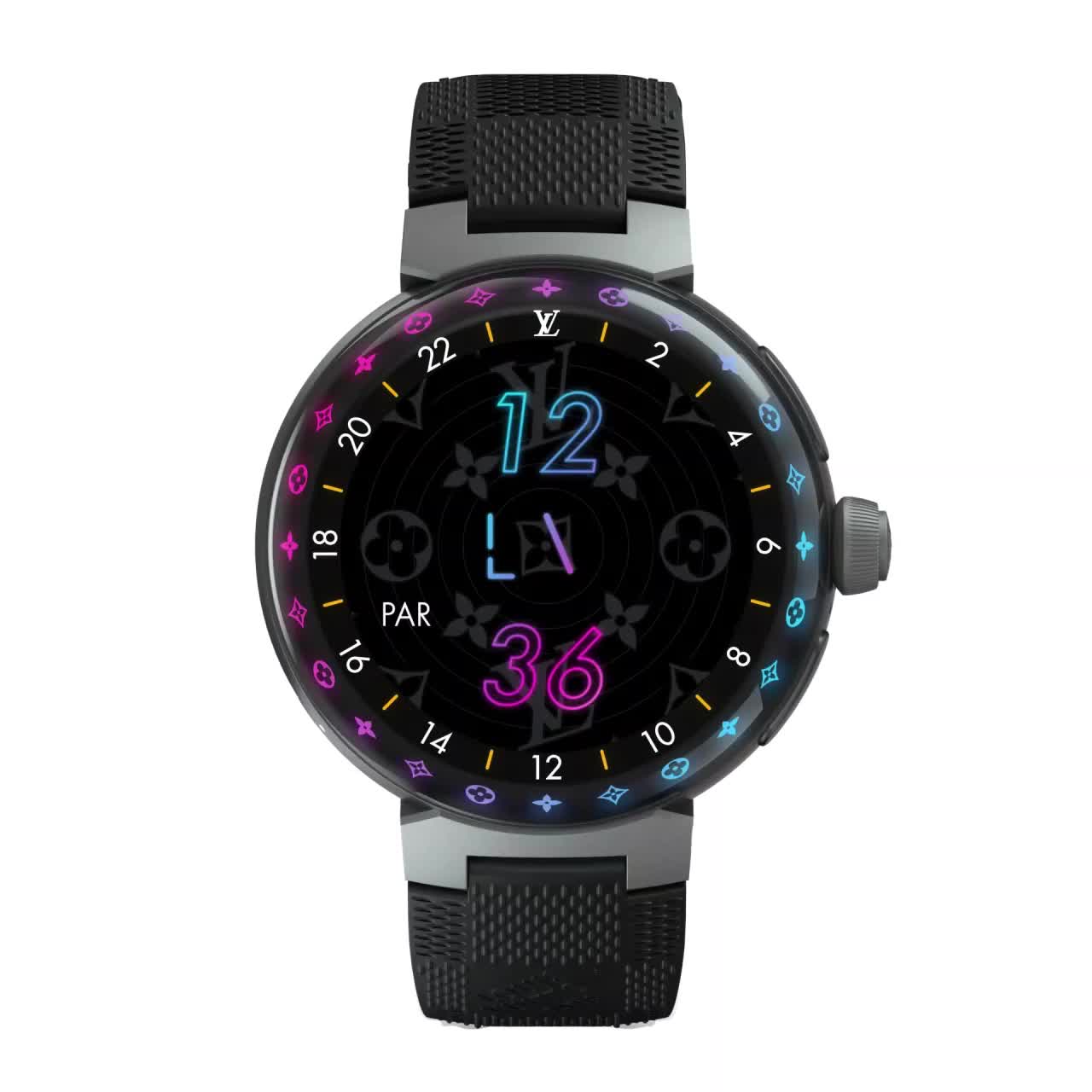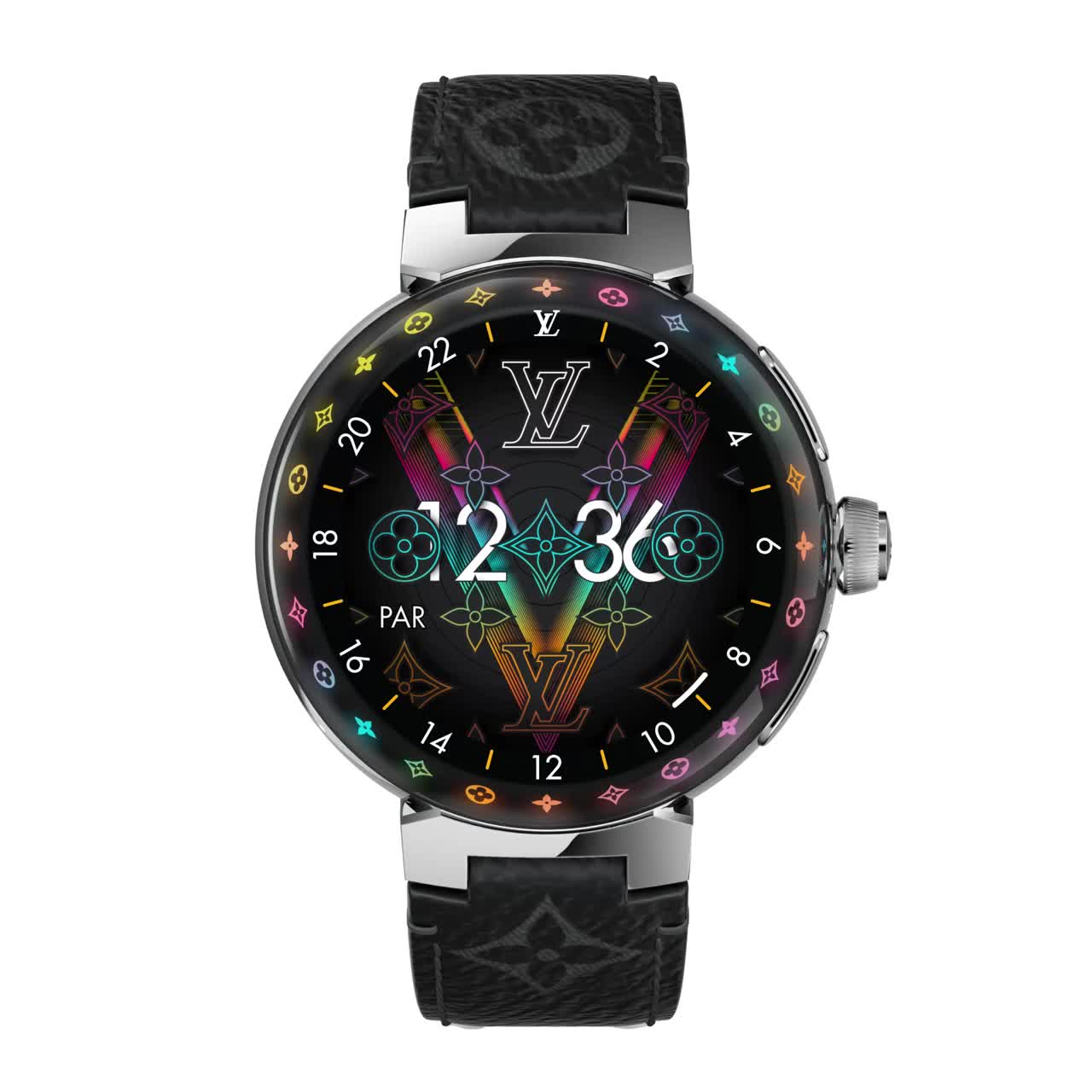 Dietro il bordo levigato, 24 luci a LED animano il caratteristico anello Louis Vuitton Monogram. Ogni volta che l'orologio si attiva o riceve una notifica, le luci si accendono in un caleidoscopio di colori danzanti, creando un affascinante bagliore animato che illumina il buio.