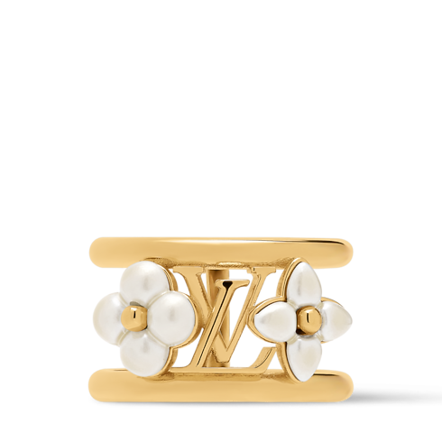 L'anello LV Floragram XS, di raffinata eleganza, trae ispirazione dall'emblematico motivo Monogram della Maison e dall'incantevole bellezza della madreperla. La sua creativa lavorazione a giorno presenta una fascia in metallo dorato impreziosita dalle celebri iniziali e da due diversi fiori iconici, messi in risalto da una luminosa resina con effetto perlato. Un accessorio femminile, che cattura lo sguardo, ideale sia per l'uso quotidiano sia per le occasioni speciali.