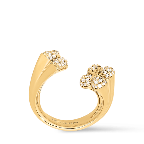 Grazie al suo design ingegnoso e alla maestria artigianale tipica della Maison, l'anello LV Flower Comet è un accessorio contemporaneo ed elegante al contempo. La precisione geometrica della fascia aperta dorata contrasta con le curve delicate dei fiori Monogram alle estremità, i quali sono impreziositi da scintillanti strass. Le iniziali LV aggiungono un ulteriore tocco emblematico a questa sofisticata creazione, in grado di catturare qualsiasi sguardo.