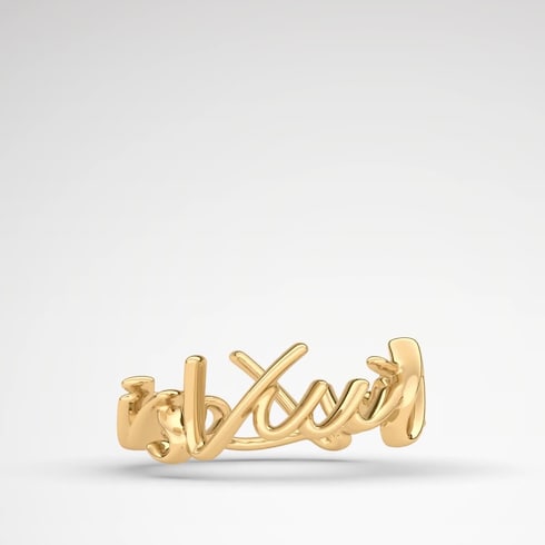 L'anello LV Script è ispirato all'elegante firma della Maison presentata durante la sfilata Primavera-Estate 2025. La luminosa fascetta in metallo dorato presenta il logo di Louis Vuitton in raffinato corsivo. La creazione di tendenza può impreziosire qualsiasi look casual o formale.