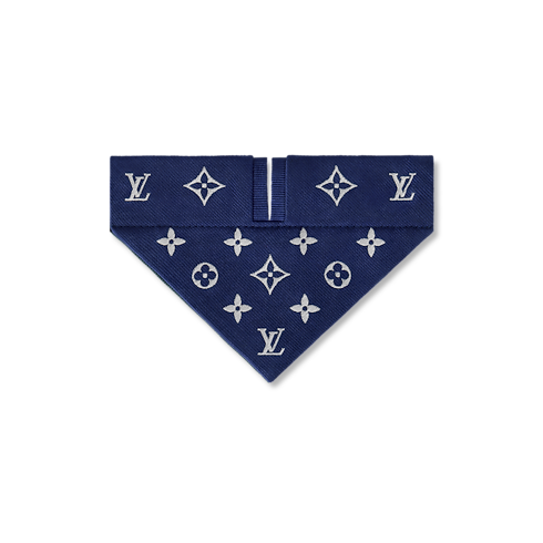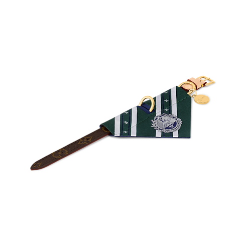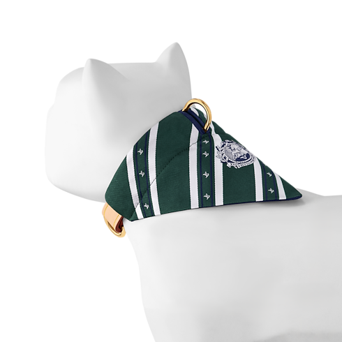 La bandana PM è la prima creazione in seta per cani disegnata da Louis Vuitton. L'esclusivo accessorio double face, ispirato alle cravatte da uomo, presenta un lato dalla tonalità verde e l'altro blu navy, arricchito dall'iconico motivo Monogram color crema. Il modello di tendenza si annoda comodamente attorno al collare, lasciando spazio per il guinzaglio.