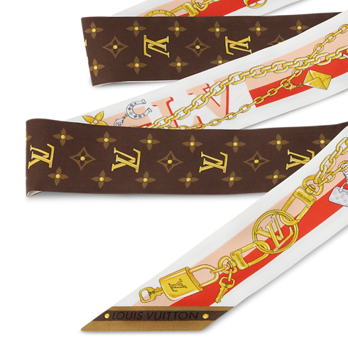 L’elegante bandeau K Charms cattura lo spirito di Louis Vuitton in un design incantevole e ultra femminile. Stampato su pura seta, il suo motivo presenta una catenella che regge una serie di charm per borse iconici che evocano il motivo Monogram e l’eredità legata ai viaggi della Maison. Ideale per l’uso quotidiano, questo sofisticato accessorio aggiunge un tocco discreto di eleganza a qualsiasi outfit.