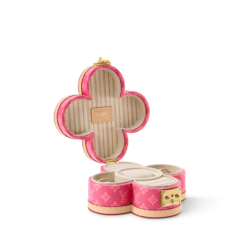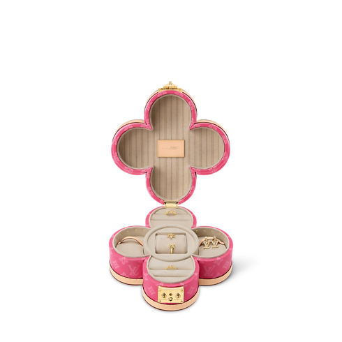 Realizzato in tela Monogram Origine, il nuovo motivo Monogram della Maison ispirato a un baule del 1902, il cofanetto portagioie Blooming Box presenta la forma di un fiore Monogram in questa raffinata tonalità di rosa. La creazione è impreziosita da un lucchetto a s dorato e rifinita in vacchetta naturale. L’interno, foderato in pelle e tessuto a righe, presenta scomparti studiati per custodire bracciali, anelli, orecchini e altri accessori.