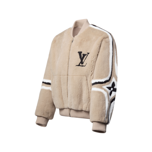 Il giubbotto in visone presenta una comoda silhouette arrotondata in stile bomber con finiture a coste per un look après-ski dall'allure contemporanea. Declinata in raffinate tonalità crema, la folta e morbida pelliccia è impreziosita sulle maniche dalle sofisticate fasce a intarsio con gli iconici fiori Monogram, mentre il petto è decorato dalle iniziali LV.