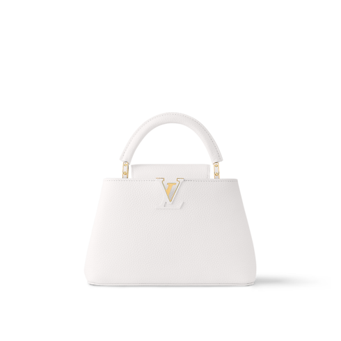 La borsa Capucines BB, in pelle Taurillon, presenta inconfondibili dettagli iconici quali il manico con staffe gioiello ispirate ai tradizionali bauli, l'esclusiva patta con fiore Monogram e le iniziali LV. La tracolla amovibile permette di indossare l'accessorio con versatilità. Il modello, lanciato nel 2013, porta il nome della via parigina in cui Louis Vuitton aprì la prima boutique nel 1854.