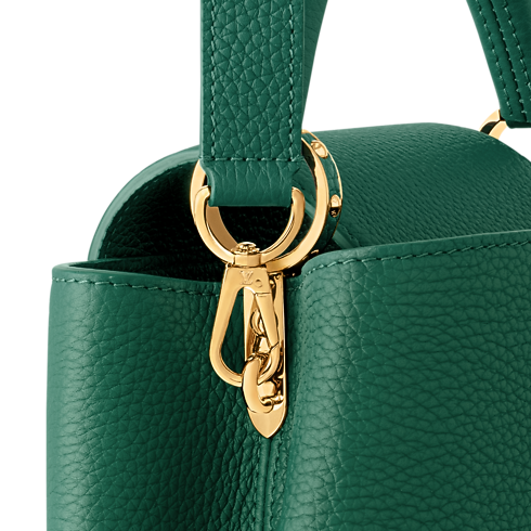 La borsa Capucines BB, dall'allure elegante e femminile, viene reinterpretata in una vivace versione dalla nuance verde smeraldo. Il sofisticato modello, realizzato in pregiata pelle Taurillon con lucenti finiture in metallo dorato, completa con raffinatezza qualsiasi look da giorno e da sera. L'accessorio può essere portato in vari modi grazie alla versatile tracolla amovibile.