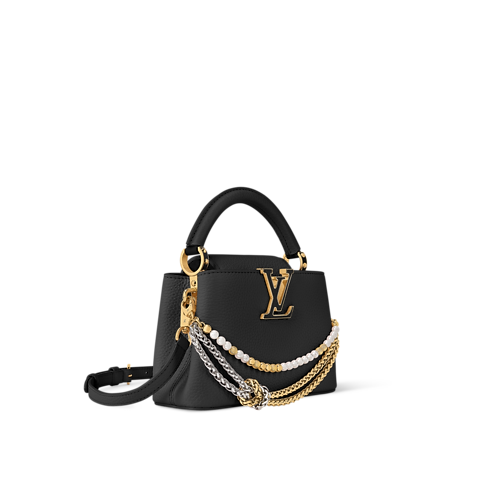 Appartenente alla Collezione Why Knot, questa versione della borsa Capucines Mini rappresenta la scelta ideale per eventi serali di grande eleganza. Realizzata in pregiata pelle Taurillon in una raffinata tonalità di nero senza tempo, è impreziosita da una catenella con doppia galvanizzatura ispirata ai gioielli. La creazione è arricchita da iconici charm con elementi Monogram impreziositi da delicati dettagli di perle. L'accessorio può essere utilizzato in due modi diversi, con la patta all'interno o all'esterno, e offre un tocco di versatilità a qualsiasi look.