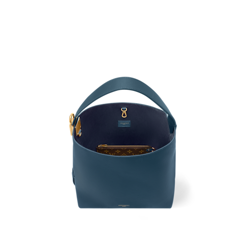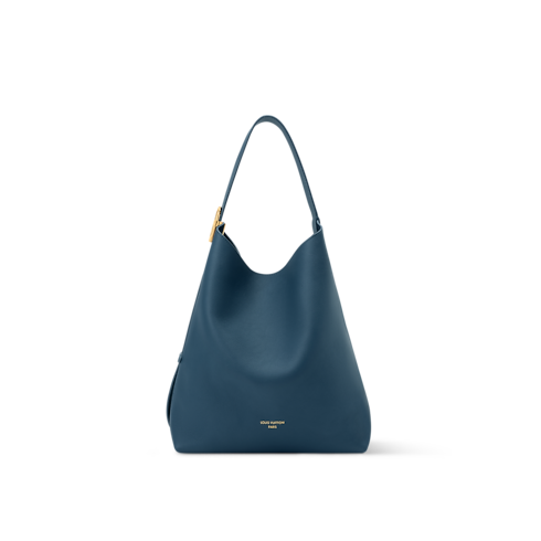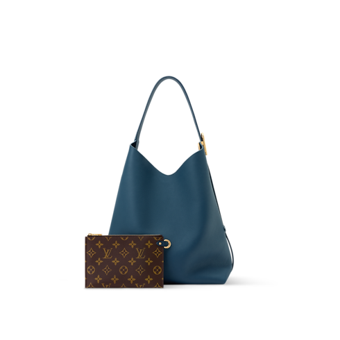 La collezione Low Key presenta questa raffinata edizione della borsa Hobo MM in blu di Prussia, realizzata in morbida pelle di vitello e con la silhouette a secchiello distintiva. L'elegante modello è impreziosito da finiture in metallo dorato dall'effetto anticato, che si abbinano alle lettere Louis Vuitton sulla parte frontale. All'interno si trova una pochette amovibile con zip decorata con l'iconico motivo Monogram, e lo spazio è sufficiente per contenere tutto l'essenziale, incluso un blocco degli appunti.