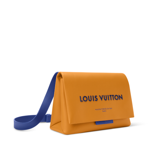 La borsa messenger Take Out, parte della Collezione LV Packaging, è realizzata in pregiata vacchetta color zafferano con la celebre firma LOUIS VUITTON ricamata a contrasto. La creazione abbastanza capiente, compatta ma raffinata, è rifinita dalla fodera tono su tono e da due tasche piatte. La lunga tracolla consente di indossare l'accessorio anche a spalla.