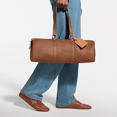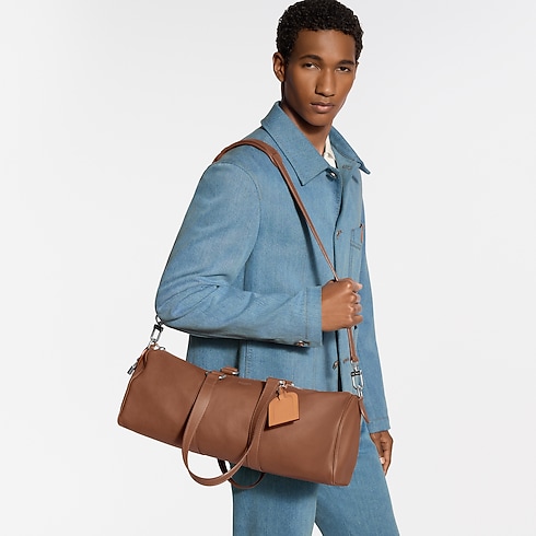 La borsa Needle, ideata da Pharrell Williams, ripropone in chiave moderna un design della Maison del 1966. La creazione, realizzata in morbida pelle di vitello con finitura nappata, rende omaggio al modello Keepall nella parte anteriore e all'eleganza di una Speedy lateralmente. L'accessorio può essere portato comodamente sulla spalla grazie ai morbidi manici.