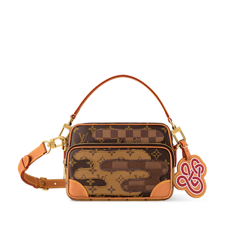 La borsa Nil, rivisitata da Pharrell Williams come omaggio ai modelli storici della Maison, è realizzata in pregiata pelle di vitello con motivo Monogram stampato. L'iconico accessorio si distingue per l'accattivante effetto vintage, accentuato dalle finiture in vacchetta anticata. Il manico superiore e la tracolla, entrambi amovibili, permettono di indossare la versatile creazione in modi diversi.