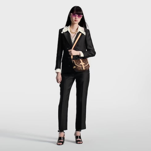 La borsa Saumur BB, realizzata in tela Monogram, reinterpreta un classico del passato in chiave contemporanea. La forma distintiva e le fibbie in vacchetta naturale richiamano il mondo dell'equitazione, mentre il dettaglio con chiusura magnetica sul davanti aggiunge un pratico tocco moderno. L'accessorio, compatto ma capiente, è dotato di manico e tracolla amovibile per la massima versatilità.