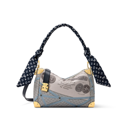 Parte della collezione Inside LV, la borsa Side Trunk MM propone una reinterpretazione esclusiva del modello originale. Caratterizzata da una ricca varietà di tessuti a contrasto, ispirati all’interno storico dei bauli, e dal dettaglio della sciarpa con motivo Monogram che impreziosisce il manico, questa creazione compatta celebra l’essenza stessa di Louis Vuitton. L'accessorio è decorato dagli angoli in metallo dorato e dall’iconica chiusura con lucchetto a s, elementi che rendono omaggio alla tradizione del viaggio della Maison.