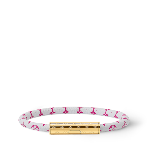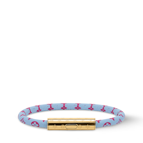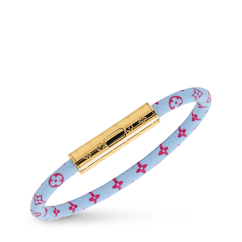 Il design vivace ed elegante del bracciale LV Confidential presenta la reinterpretazione di una celebre firma della Maison che cattura lo sguardo. La tela, decorata dal motivo Nanogram stampato in versione colorata, è completata da una chiusura in metallo dorato finemente incisa con elementi della fantasia Monogram. Questo accessorio, divertente e alla moda, è il complemento perfetto per un look sporty-chic.