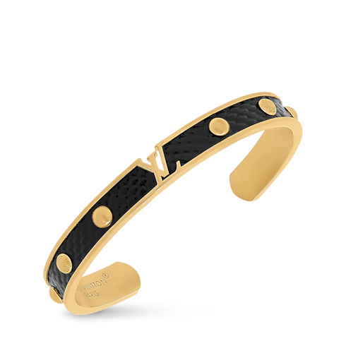 Il bracciale LV Initiales, in metallo dorato, è rivestito in pregiata pelle di serpente Karung e impreziosito da borchie per un tocco elegante e grintoso. Il modello è arricchito dalle celebri iniziali della Maison, sapientemente realizzate con un sofisticato effetto lavorato a giorno. L'accessorio, perfetto per i look quotidiani, si distingue per lo stile intramontabile e di tendenza.