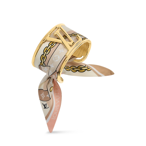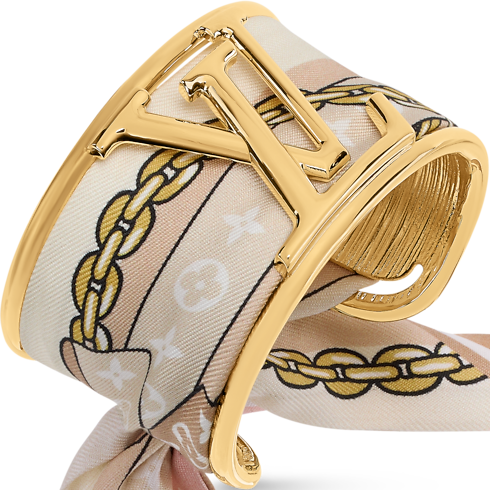 Unendo il prezioso splendore del metallo dorato alla morbidezza della pura seta, il bracciale LV Initiales Silk eleva il design dei gioielli a un nuovo livello di opulenza e creatività. Un bandeau amovibile, impreziosito dal motivo Monogram, si intreccia su un raffinato accessorio rigido, rifinito dalle audaci iniziali LV. Un modello straordinariamente originale, dal carattere distintivo e inconfondibile.