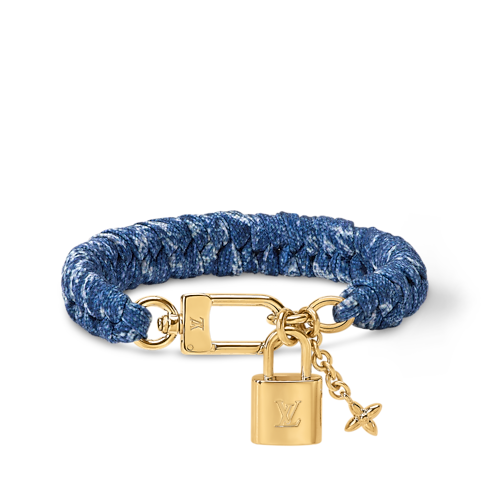 Il bracciale LV Locked, dallo stile casual-chic, rappresenta l'essenza della Maison con un tocco unico e raffinato. Il modello in denim viene completato da due iconici charm in metallo dorato: il lucchetto tipico di Louis Vuitton e un fiore Monogram su una delicata catenella. Indossato da solo o abbinato ad altre creazioni, l'accessorio aggiunge un dettaglio di tendenza agli outfit quotidiani.