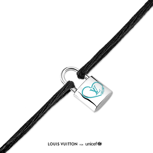 Il bracciale Silver Lockit, in argento sterling, smalto blu e cordino in poliestere nero, nasce dalla collaborazione con l'ambassador della Maison Felix Lee. Il modello, in edizione limitata, è realizzato interamente in materiali riciclati e presenta un charm a forma dell'iconico lucchetto ideato da Georges Vuitton nel 1901 per l'emblematica borsa Steamer. L'elegante decoro è impreziosito dal cuore inciso con iniziali LV e motivo "Dream", creato dalla superstar del K-Pop e ravvivato da un moderno tocco di colore. L'esclusivo gioiello può essere indossato da solo o insieme ad altri accessori. Ogni acquisto permetterà di devolvere 100 USD all'UNICEF per sostenere i bambini in difficoltà.