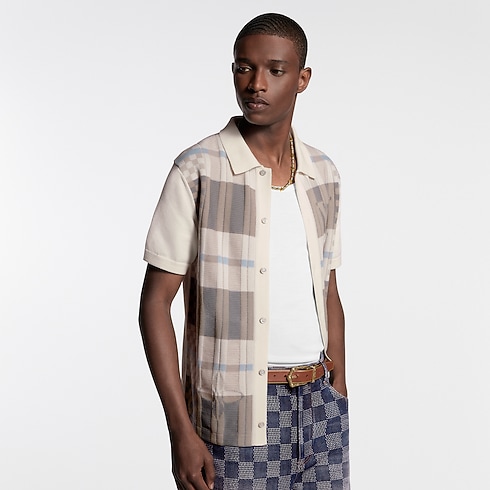 Questa camicia a maniche corte in pregiato cotone è impreziosita sul davanti da un motivo a quadri in trama jacquard nelle eleganti tonalità beige caratteristiche della sfilata Primavera-Estate 2026. Elementi iconici sono sapientemente integrati nel motivo, mentre un colletto stile polo lavorato a maglia e bottoni effetto madreperla completano con raffinatezza questa sofisticata interpretazione dello stile quotidiano.