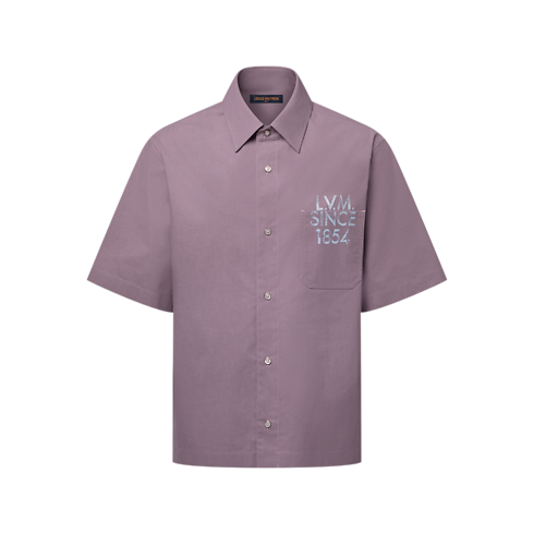 Questa raffinata camicia a maniche corte è declinata nel color lilla ed esalta le delicate cromie della stagione. Le firme stampate, ispirate a quelle dipinte a mano, evocano la sfilata Primavera-Estate 2026, donando un sofisticato dettaglio grafico: il logo L.V.M. Legacy impreziosisce la tasca sul petto, mentre il motivo LV Alphabet caratterizza il retro. I bottoni effetto madreperla aggiungono una luminosa finitura di pregio.