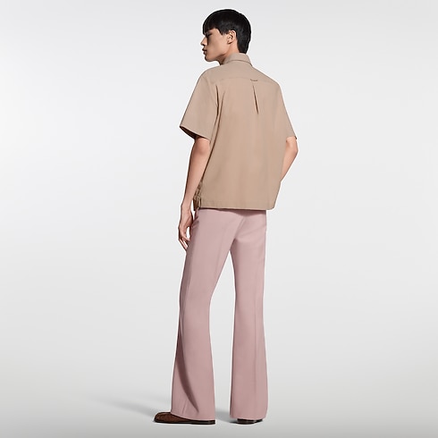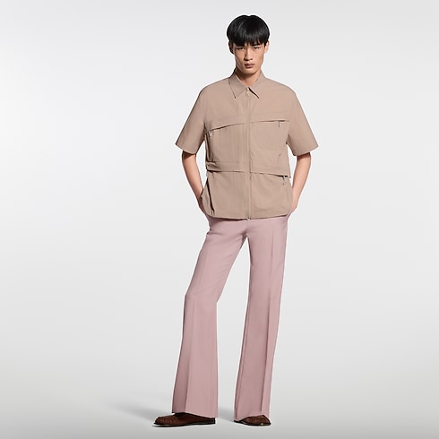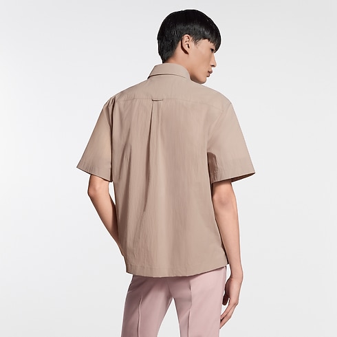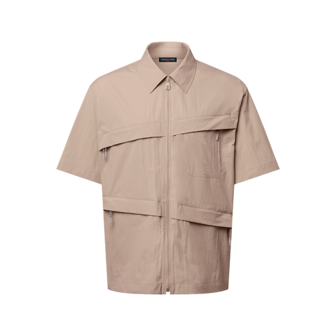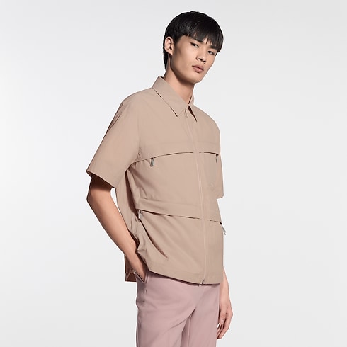 Questa camicia a maniche corte con zip anteriore, realizzata in un leggero tessuto tecnico nella classica tonalità cammello, si ispira al raffinato tema dell'alpinismo della sfilata Primavera-Estate 2026. Le quattro tasche con zip disposte in modo asimmetrico e dotate di pratici tiretti in stile sportivo conferiscono un tocco contemporaneo, mentre l'emblematico ricamo tono su tono impreziosisce la tasca sul petto. Questo capo può essere indossato in maniera più tradizionale oppure aperto, sopra a una T-shirt.