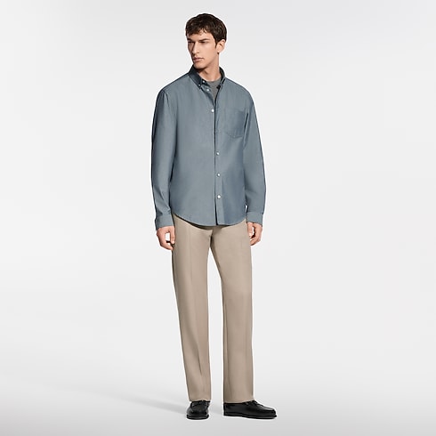 Camicia a maniche lunghe in chambray di cotone e seta